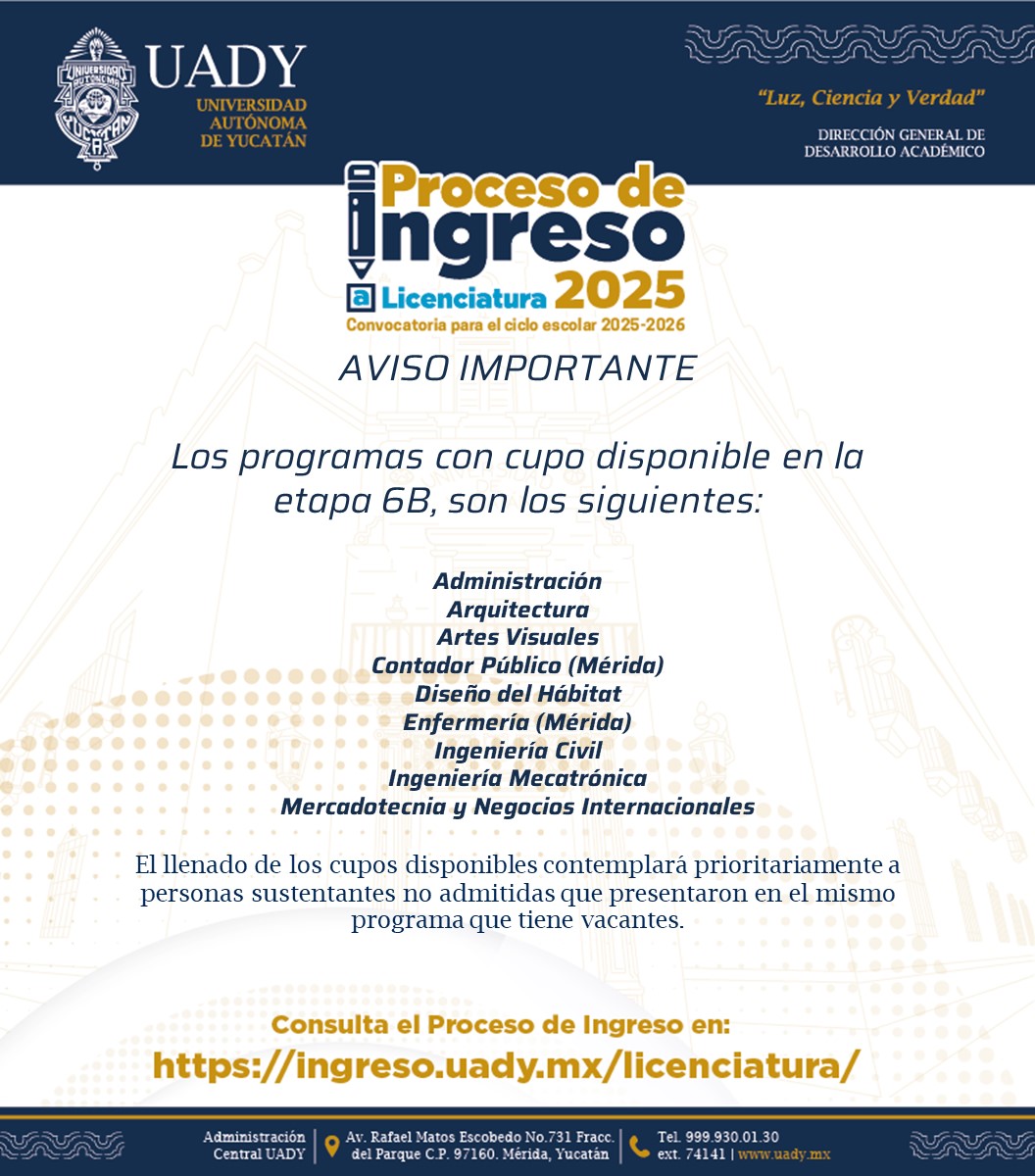 Si tienes dudas escribe al correo electrónico staff.seleccion@correo.uady.mx
